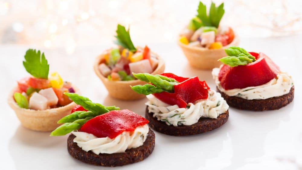 • Presentación cuidada: Los aperitivos navideños se destacan por su presentación elegante y atractiva. Se suelen decorar con elementos festivos como ramitas de romero, hojas de laurel, frutas confitadas o caramelizadas, y espolvoreo de especias o hierbas frescas.