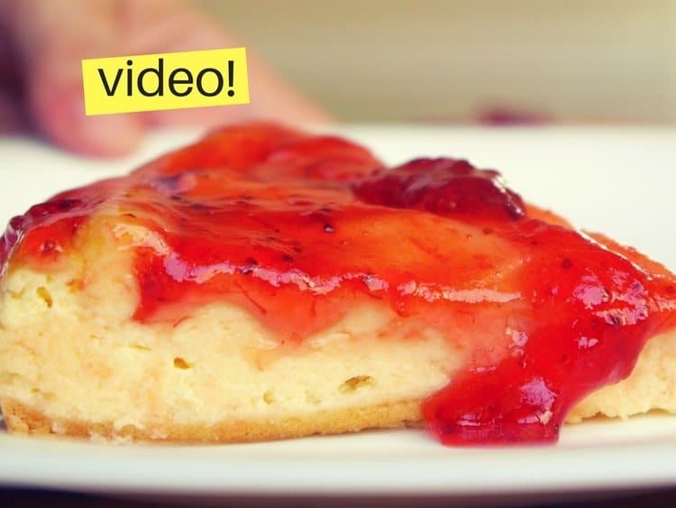 - Agregar encima del CheeseCake la mermelada de sabor a gusto previamente calentada para que esté mas líquida. Al igual que con el queso crema, yo utilicé mermelada light sin azúcar para aprovechar que ésta es una receta de postre sin azúcar. Yo utilicé mermelada de frutillas, pero queda bien con cualquiera, podés utilizar la que más te guste!