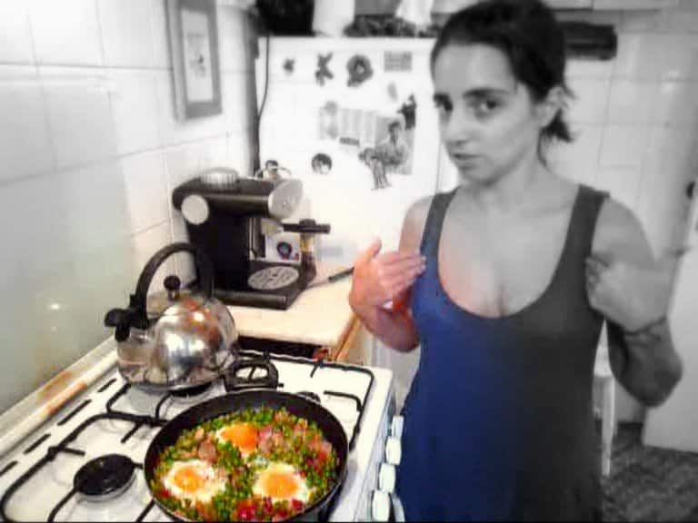 - Hacer unos pequeños huecos entre las arvejas, poner los huevos hasta que se cocinen. Servir.