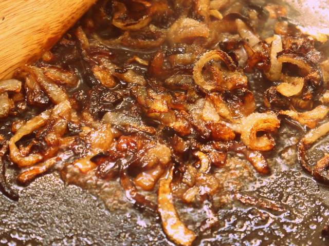 Cuando me puse a investigar la cebolla caramelizada y cómo hacerla correctamente apareció, como no, Gente Pesada. Según dicen ellos, la caramelización no es necesariamente agregar azúcar sino más bien procurar la oxidación de la propia azúcar del alimento (de la cebolla en este caso), mediante la cocción lenta. Pregunté si se podía utilizar ayudita de azúcar refinada para lograr la cebolla caramelizada y me miraron con mala cara.