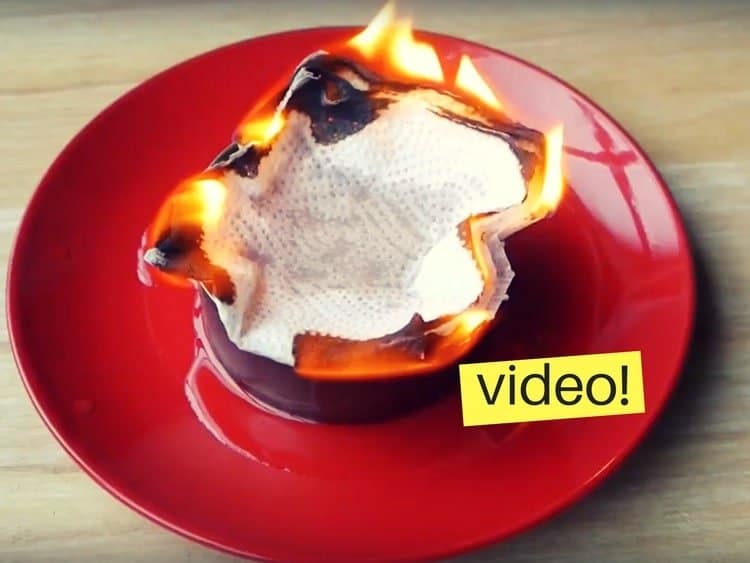 - Cuando esté embebido en aceite, con un encendedor o fósforo encendemos las puntas del papel. El primer rumor es cierto! La lata de atún ardió alrededor de 45 minutos, mucho más de lo que había leído.