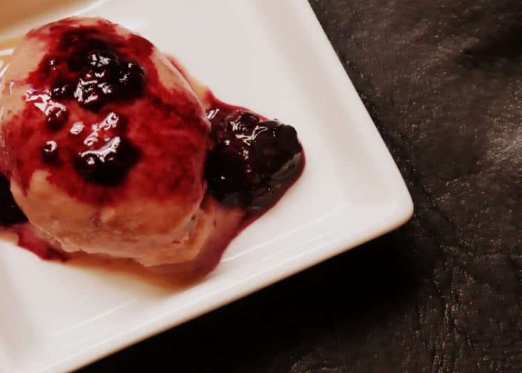 - Una vez que el helado esté listo, servir en bochas. Se puede acompañar con esta salsa de frutos rojos.