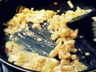 2. Rehogar ambos en aceite, a fuego medio, hasta que la cebolla esté transparente.