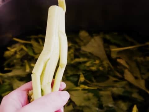 Para limpiar los grilos lo mejor es separar los tallos más gruesos. O sea, los de abajo de todo y un poquito más. Eso es porque es demasiado amargo. Te quedarán las hojas del grilo y los tallitos que las sostienen. Una vez que tengas esto separado, los sumergís en agua tibia por un rato. Podés ponerles un chorrito de vinagre si querés desinfectar. Cuando los saques de ahí van directo a la receta que hagas.
