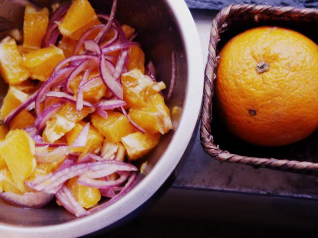 Y en la famosísima sección “Platos que tus invitados intentarán rechazar pero como son invitados probarán, en un principio con desconfianza, pero luego te pedirán la receta porque son buenísimos”, esta ensalada de naranja y cebolla riquérrima, veranísima: