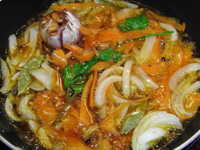 - Condimentos: 2 cdas de pimienta en grano, 2 hojas de laurel, una ramita de romero, tomillo.
