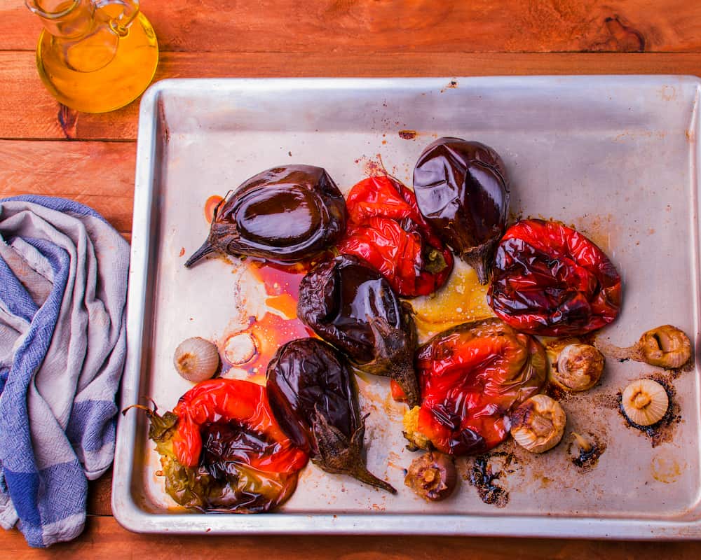 Esta receta se caracteriza por su simplicidad y autenticidad. Básicamente consiste en asar una variedad de verduras como pimientos asados, berenjenas, tomates y cebollas, directamente sobre el fuego o en el horno.