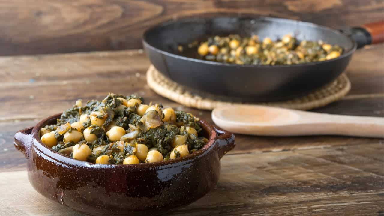 La receta típica de garbanzos con espinacas
