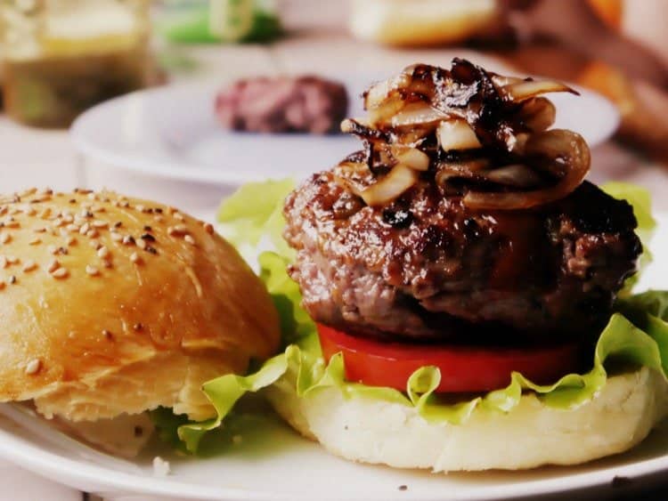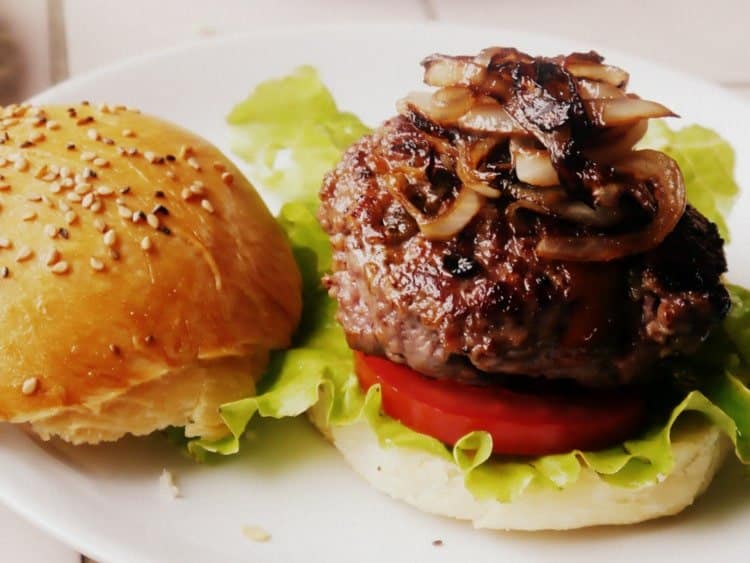 7. Además de estas hamburguesazas hice pan para hamburguesas casero y cebolla caramelizada. No me gusta cocinar.