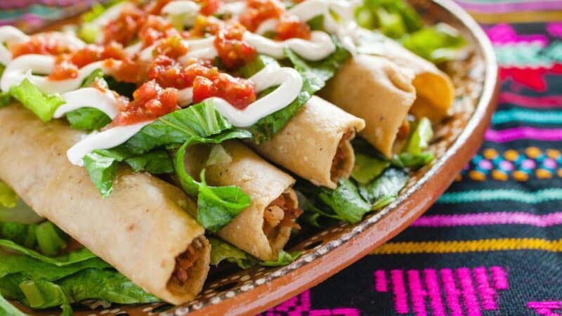 Receta de Flautas de Pollo mexicanas: son tortillas fritas rellenas de pollo sazonado. Un clásico de la cocina mexicana.
