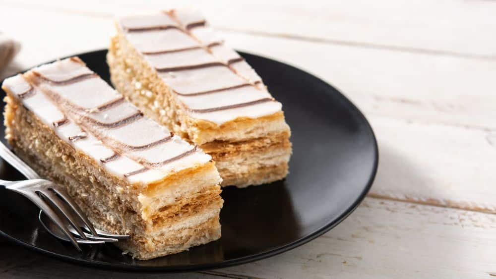 - Mille-feuille: Este es su nombre original en francés, que se traduce literalmente como “mil hojas”. Es el nombre más comúnmente utilizado en países de habla francesa y en lugares con una fuerte influencia culinaria francesa.