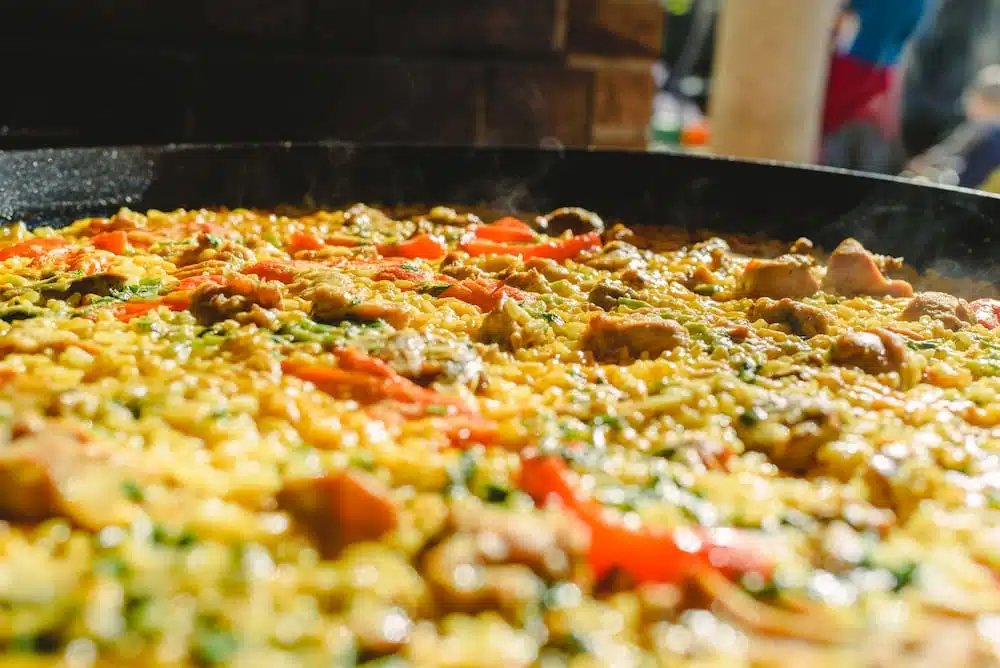 A diferencia de la paella de marisco o la famosa paella valenciana, esta se nutre de los productos del campo: pollo, conejo, costillas de cerdo y una selección de verduras frescas que aportan un sabor increíble al caldo.