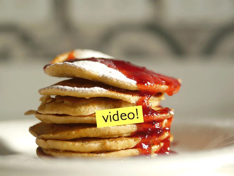 - En una sartén anti adherente con un poco de manteca o spray de aceite, colocar unas dos cucharadas de preparación. Dorar de ambos lados y servir en una torre con mermelada sin azúcar.