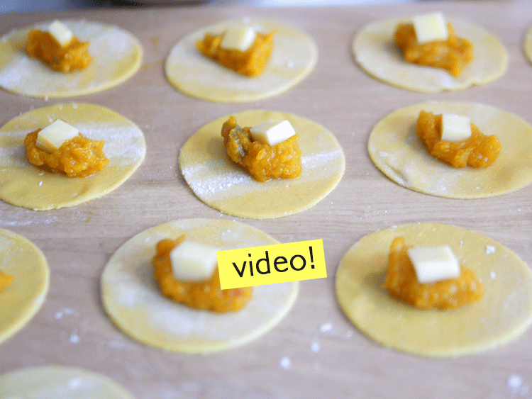 - Estas son unas de las pastas caseras rellenas más fáciles. Cortamos discos con el corta pasta ciruclar, los rellenamos y los cerramos como una empanadita sin repulgue, le pueden poner un poco de agua por los bordes del relleno si la masa está muy seca para que no se desarmen en la cocción.