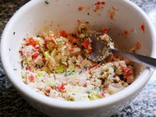 1. Mezclar todos los ingredientes del relleno en un bol. Salpimentar y agregar un chorro de aceite de oliva. Mezclar bien y aplastar mientras mezclamos. Quedará una especie de pasta.