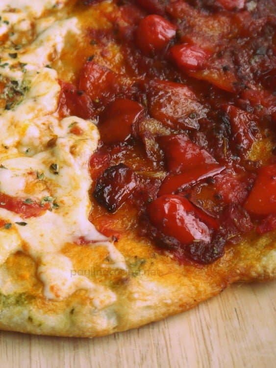 Ya sé que una pizza sin queso parece cosa rara. Pero INSISTO, me voy a poner pesada. Esta pizza es la estrella en todas las reuniones en las que haga pizza. Si buscás una pizza sin queso que pueda subirse en el ring con una grande de muzza, es esta.