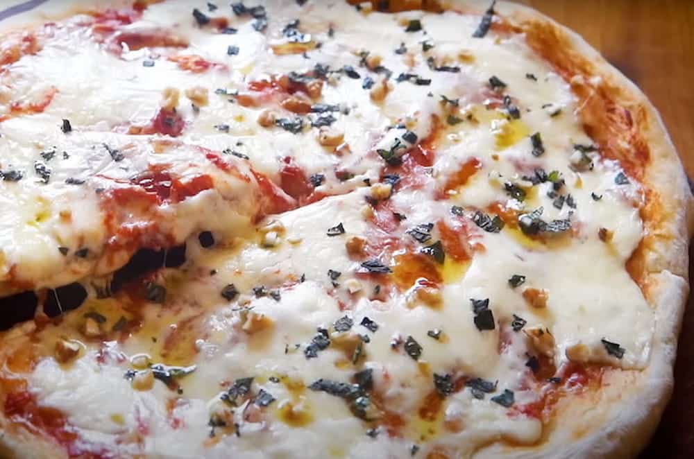 - Luego agregar un poco más de salsa, el queso o muzzarella y los toppings elegidos, terminar de hornear hasta dorar.