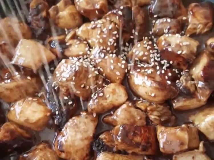 Posta, confiá en que el pollo se cocina rápido y más si está en pedacitos, así que no te zarpes con el fuego porque se va concentrar demasiado la salsa de soja y no te va a copar.
