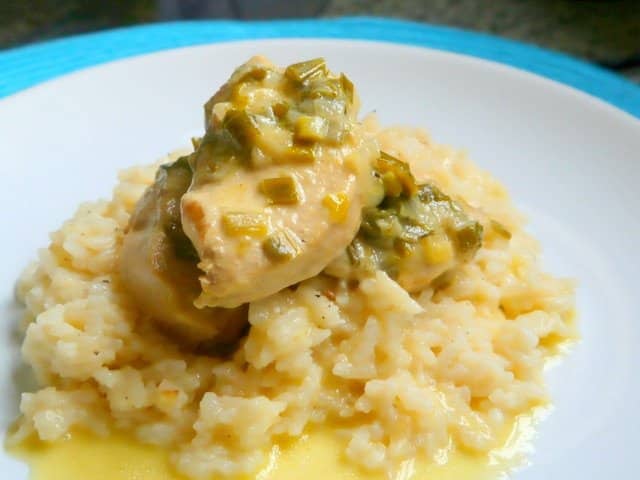 Hice la receta del pollo a la crema de verdeo sólo le agregué champignones al arroz una vez emplatado. Acompañé con vino blanco. Riquísimo.