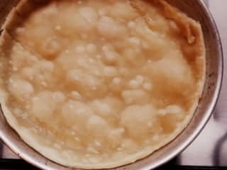 1. Colocar en un molde pequeño las tapas de empanadas (dos de ellas), como formando la base de una tarta.