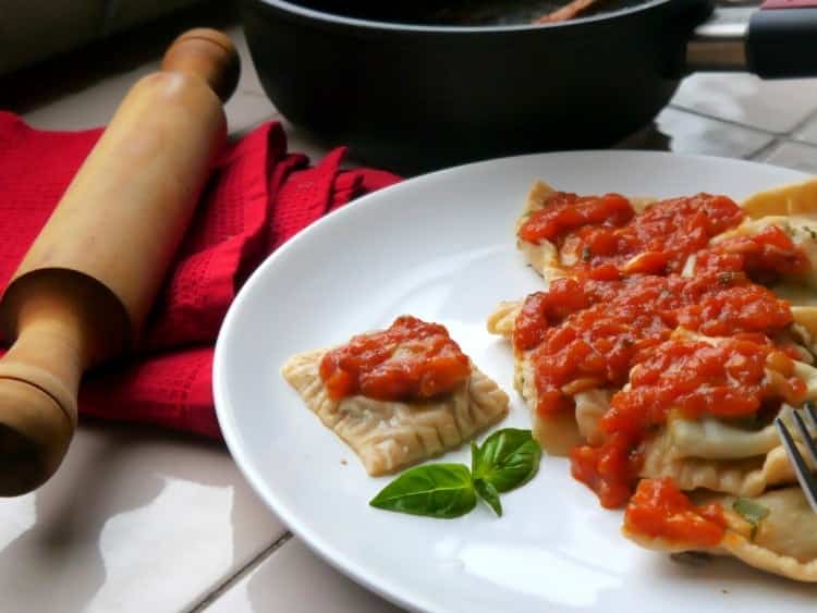 20. Servir tus ravioles caseros con una buena cantidad de salsa y parmesano a piacere.