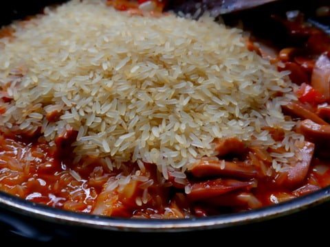 9. Cocinar destapado hasta que el arroz haya absorbido toda el agua.