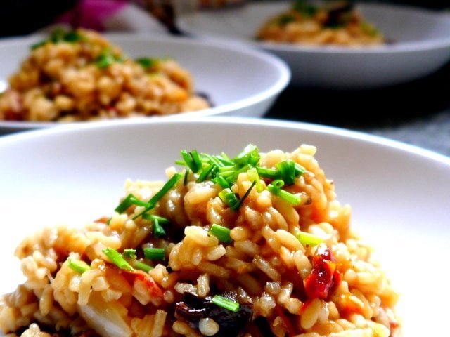 Risotto de hongos y jamón crudo