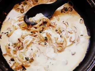 Finalmente decidí hacerla. Y, ¿saben qué? quedó buenísima. Una salsa para pasta suave, cremosa, con protagonismo absoluto de la cebolla de verdeo.
