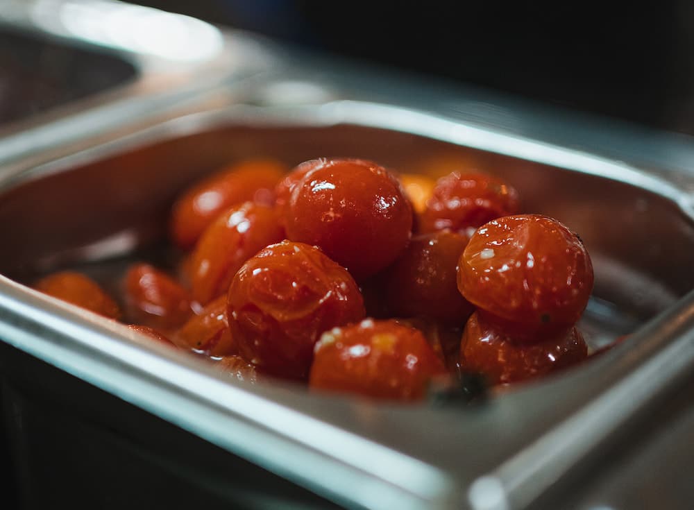 1. Tomates confitados en sartén: Si lo que se busca es algo rápido y sin complicaciones, este es el método ideal para hacer tomates confitados. En una sartén grande, se colocan los tomates cherry, con un poco de aceite de oliva, ajos, hierbas frescas con una pizca de sal y se cocinan a fuego medio-bajo, hasta que los tomates se ablanden y la piel comience a arrugarse.
