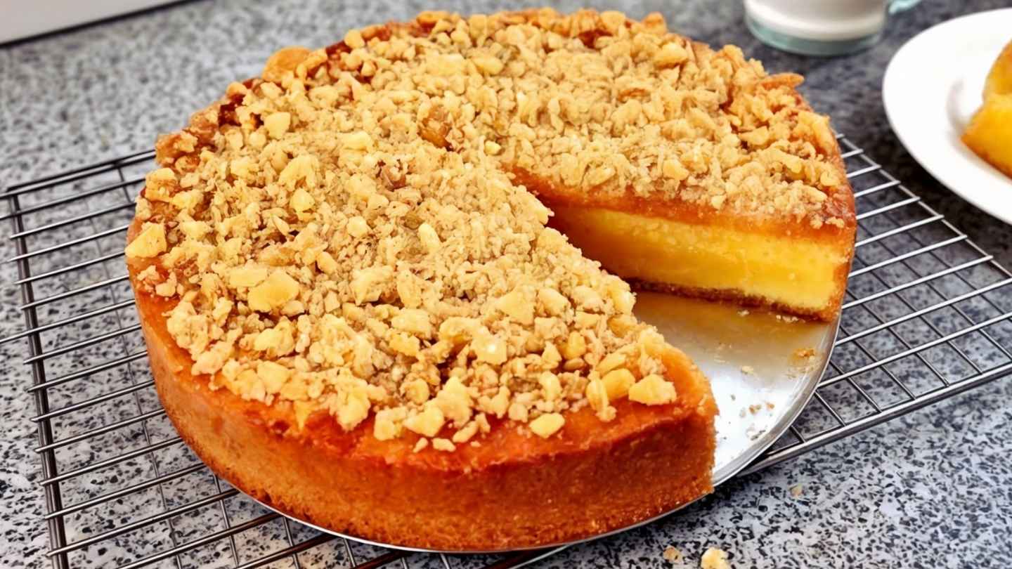 - El riwwel, el protagonista: Esa cubierta de migas doradas es la estrella indiscutida de la torta alemana argentina.