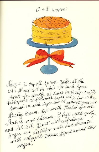 Estaba yo preparando un post sobre libros de cocina de famosos cuando me topé con este. Y me resultó tan encantador que decidí hacer un post aparte. No sé mucho de pintura y este muchacho Warhol nunca ha sido santo de mi devoción, pero el libro me pareció un proyecto propio e interesante frente a tanta apariencia de “hagamos un libro de cocina con tu cara y vendámoslo como chorizos”. Se ve que Andy Warhol hacía esto con las pinturas nomás.
